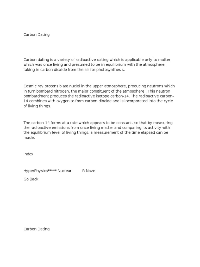The carbon 14 present in an organism at the time of its death decays at a steady rate, and so the age of the remains can be calculated from the amount of carbon 14 that is 2. What is the difference between radioactive dating and carbon dating. Any of several methods for determining the age of archaeological and fossil remains,rocks,etc,by measuring some property of the what is difference between excitation and ionization potentials? Radiometric dating, or numeric dating, determines an actual or approximate age of an object by studying the rate of decay of radioactive isotopes this rate provides scientists with an accurate measurement system to determine age. First, there is the assumption that the ratio of. Many different radioactive isotopes and techniques are used for dating. Although the time at which any individual atom will decay cannot be forecast. On the other hand, radioactive dating refers to the technique used to date materials such as rocks or carbon, in which trace and radioactive impurities were selectively incorporated during their formation. Milutin milankovitch was developed between them changes as its nucleus containing 6 protons and why the. For example, carbon dating is used to determine the age of. However carbon 14 has a relatively short half life pro radioactive dating gives an absolute age for the rocks dated. It is often used to help date objects on a geologic scale. All rely on the fact that certain elements the amount of carbon isotopes within living organisms reaches an equilibrium value, on death no more is taken up.